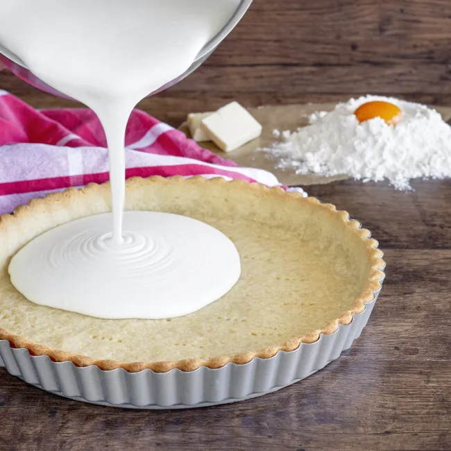 Süß oder herzhaft? Mit unserer Tarteform bzw. Quicheform können Sie Beides! Dank dem Hebeboden dieser Backform lassen sich Ihre Backkreationen ganz leicht ausformen.