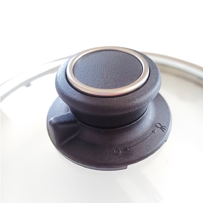 Der Deckelknopf ist entlüftbar und bis 230°C hitzebeständig und spülmaschinenfest.