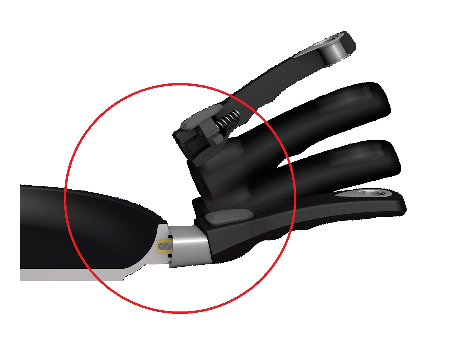 E Griffbefestigung durch einzigartiges Stecksystem, keine Schrauben, kein Wackeln der Griffe